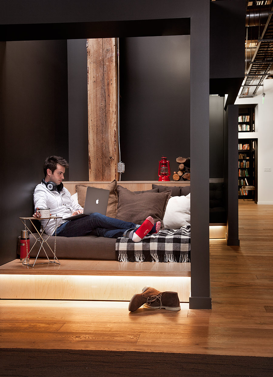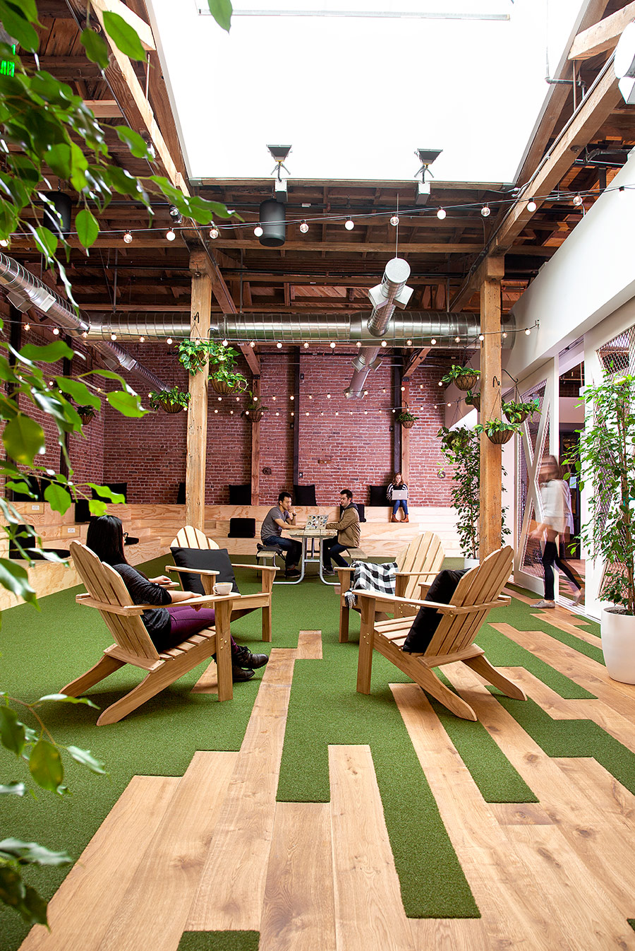 Having a choice between different types of seating, and places to work and meet throughout the day is a crucial part of the bottom-up company model that encourages employees to have a sense of ownership. The seamless blend of work and play encourages authentic interaction and promotes collaboration.