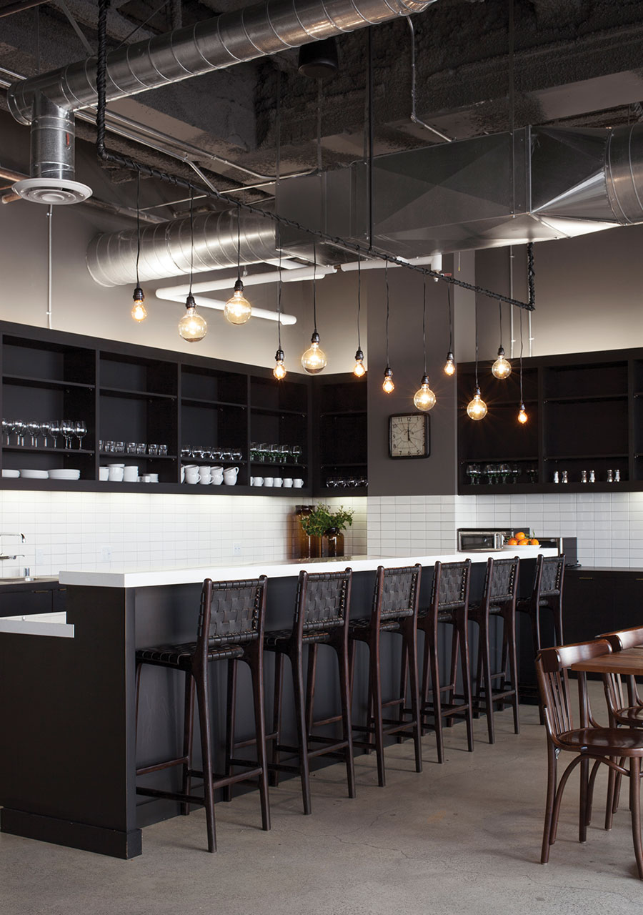 The 17,000 square foot Hotel Tonight headquarters features an innovative open space plan with a variety of communal gathering spaces including a full bar, kitchen, cafe, and intimate lounge niches all designed to promote collaboration and inspire creativity.