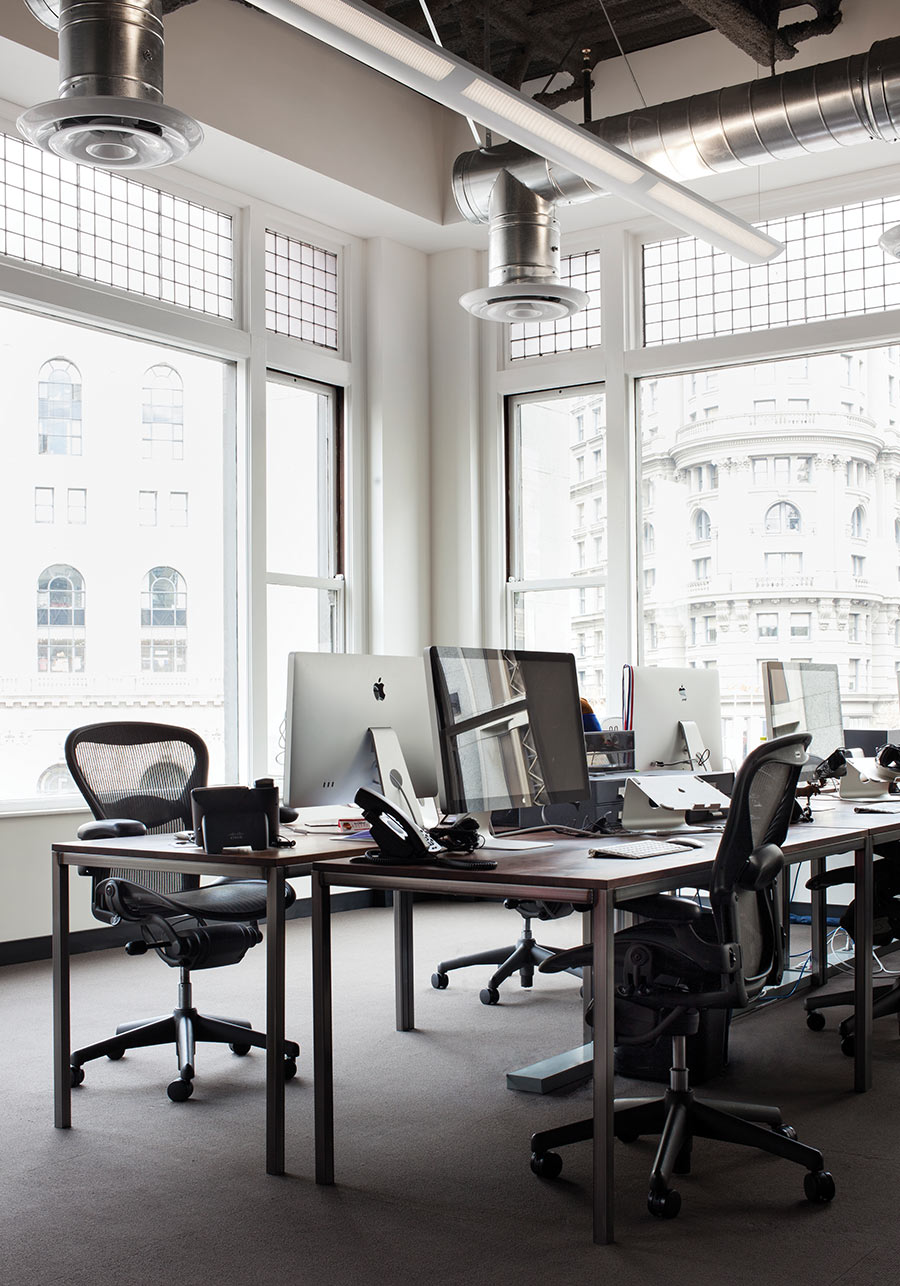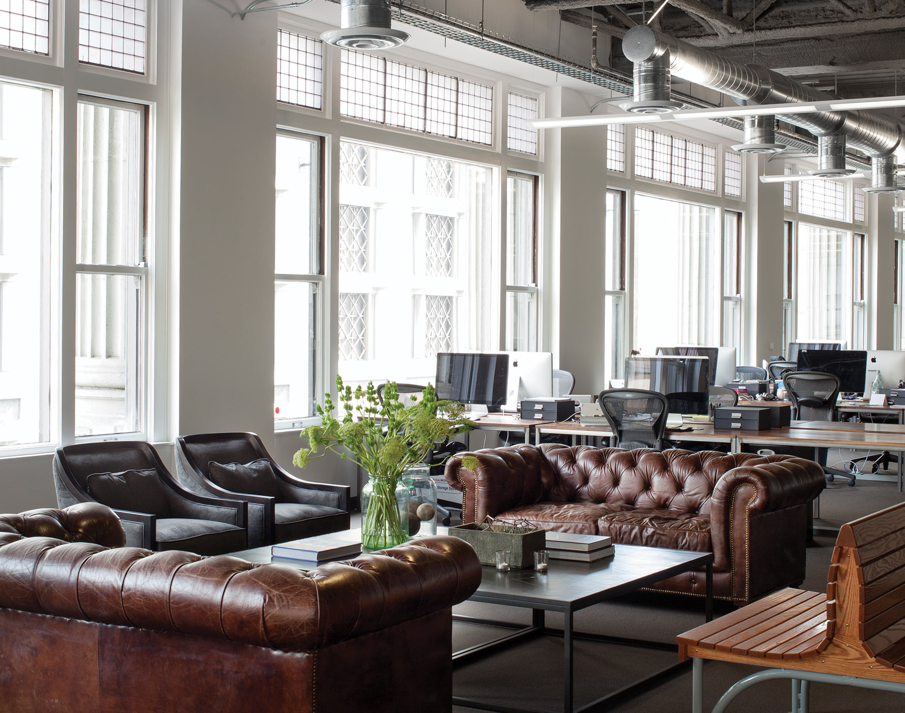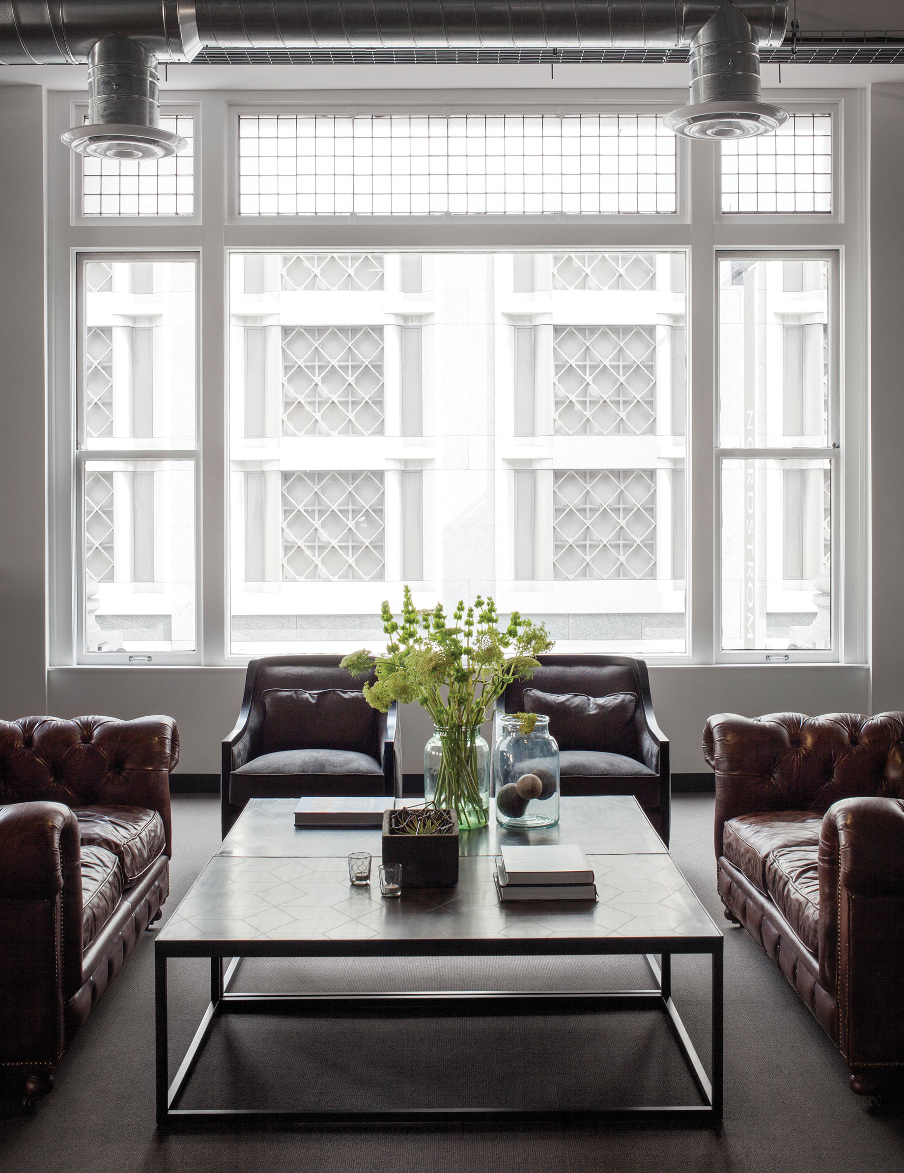 The Details MatterA highly customized FF&E package invites employees and guests to enjoy the work space as they would a hip hotel lobby, with tasteful lounge seating, an elegant cafe, and a strategically situated bar boasting views of a vibrant Market Street below. |